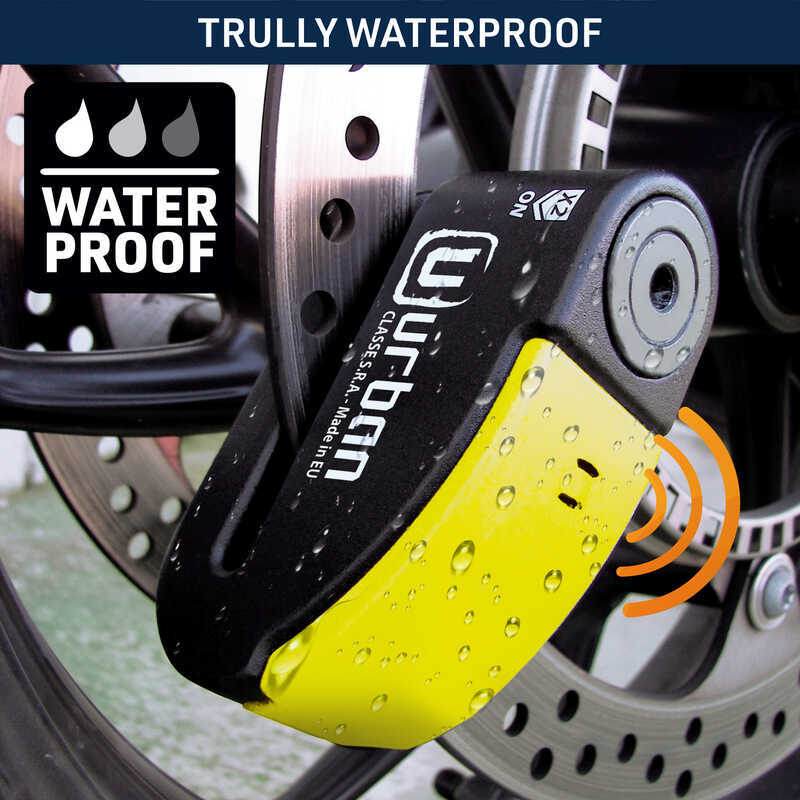 120 dB alarm ve uyarı sistemine sahip yüksek güvenlikli disk kilidi. Sertleştirilmiş dövme çelik gövde, testere, cıvata kesici, çekiç ve levye saldırılarına karşı test edilmiştir. CLASSE SRA ve SOLD SECURE GOLD sertifikalıdır.