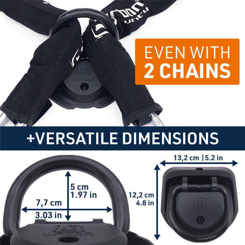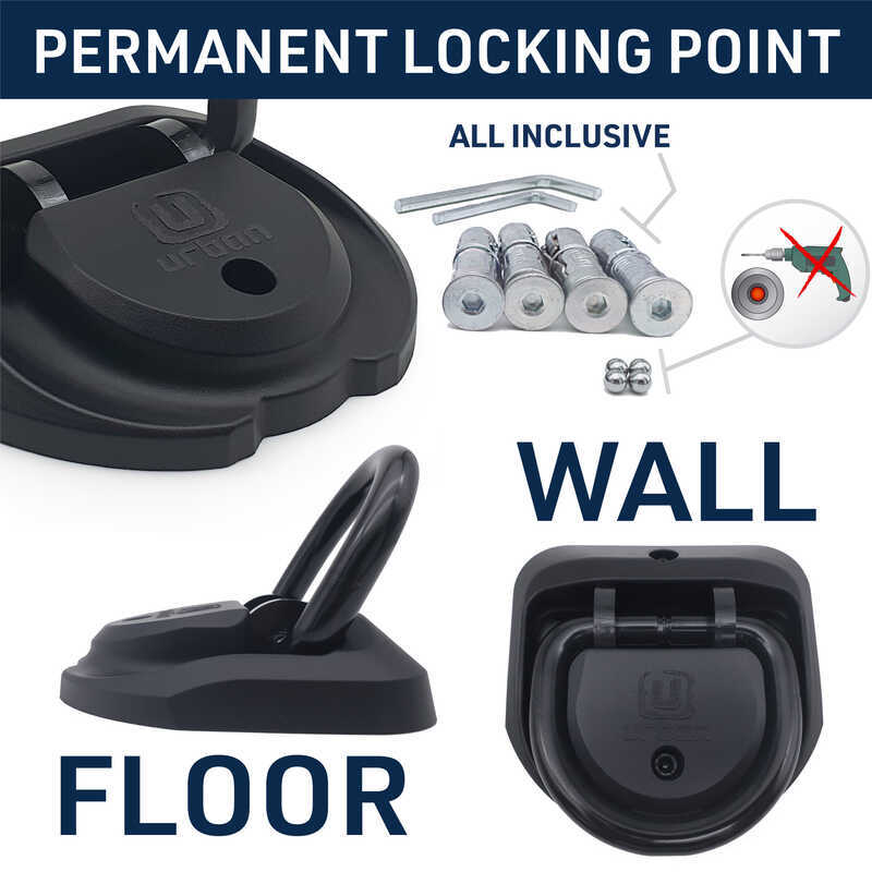 4 sabitleme noktasına sahip olan bu ankraj, beraberinde gelen cıvatalar ve anti-delme bilyalı yataklar sayesinde zemine veya duvara kalıcı şekilde monte edilir. Yüksek kaliteli malzemeleri sayesinde hem iç hem de dış mekânda motosiklet, e-bike, bisiklet veya istediğiniz eşyalarınızı güvenle korur.